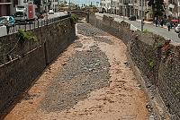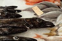 Funchalem protékají dvě řeky, které jsme překročili krátce po sobě. Nejsem si jistý, zda tahle fotka (obr. 24) je z prvního nebo druhého mostu, ale obě řeky vypadaly podobně. Naší další zastávkou byla tržnice. Nejdříve nám Šárka podala informace o místním ovoci a pak už jsme se rozešli po tržnici. S Martinem jsme šli asi po čichu, takže jsme začali v rybí části tržnice. Zde byly kromě špalků tuňáka nejzajímavější místní ryby ešpady (obr. 25). Žijí v asi dvoukilometrové hloubce a v noci se vydávají lovit až zhruba o kilometr výš. A to je příležitost pro místní rybáře, kteří je v noci vytahují pomocí extrémně dlouhých vlasců. Díky rozdílu tlaků se jim po vytažení nad hladinu poněkud vypoulí oči.