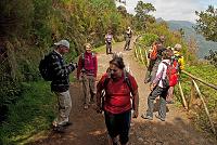 … Podél levády s jejími přítoky (obr. 91) zde vedla široká cesta (obr. 92), kterou jsme došli až k vodopádu Risco (= riziko, obr. 93). Tady jsme se na chvíli zastavili, pak se kousek vrátili podél levády, která zde byla plná vody (obr. 94 a 95), a dokonce jsme v ní zahlédli pstruhy. Pak jsme přešli na druhou stranu údolí, kde už jsme museli chodit pouze v řadě za sebou, nebo se vyloženě zastavit, když jsme nechávali projít někoho v protisměru.