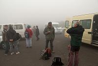 Pátek nezačal nejlépe. Jednak se do naší skupinky vetřel jedenáctý, český turista jménem Ilja, který mi byl nesympatický po pár minutách. A také naše vrcholová etapa nezačala dobře. První vrstvu mraků jsme sice projeli, ale když nás mikrobus vysadil na Pico do Areeiro (1818 m n. m.) byli jsme už opět v mracích. Viditelnost nestála za řeč (obr. 127) a drobně mrholilo. Takže jsme mohli jít na nejvyšší horu ostrova a nic přitom nevidět. Horalé mezi námi (hlavně Vlastík a Blanka) ovšem zařídili, že jsme to odložili na sobotu, Aldonio přivolal zpátky náš mikrobus a my se vypravili celé pohoří objet, až jsme ze severu dorazili na Pico das Pedras (= hora kamenů; 900 m n. m.), kde začínala původně plánovaná sobotní cesta (obr. 128).