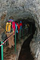 … Pod vodopádem Caldeirao Verde (obr. 141) jsme si dali přestávku. Leváda sice pokračuje k dalšímu vodopádu s lákavým názvem Caldeirao do Inferno (= pekelný kotel), ale cesta podél ní je nebezpečná, takže byla pro turisty uzavřena. Škoda, rád bych viděl, v čem vaří pekelníci. My jsme to tedy otočili zpátky a v jednom z tunelů nás Martin vyfotil (obr. 142). Je to focené s bleskem, v tunelech totiž člověk většinou bez baterky nevidí na krok před sebe (nejpraktičtější jsou ale čelovky). A také je dobré si všimnout toho zábradlí. Stejné občas bylo i mezi levádovou cestičkou a nějakou propastí.