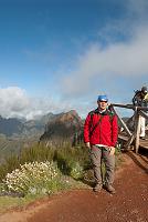 Ilja s námi chtěl jít na střechu ostrova, čehož se předchozího dne nedočkal, takže s námi jel znovu. Blanka ovšem zůstala na hotelu. Zato madeirský průvodce Aldonio s sebou vzal manželku, takže naše sestava byla trochu obměněná. Druhý výjezd na 1818 metrů vysokou horu Pico do Areeiro (= vrtošivá hora – jak příznačné!) nabízel úplně jiný výhled. Když jsem viděl silnici, kterou jsme sem přijeli (obr. 146), pro jednou jsem zalitoval, že zde nemám kolo. Hned na okraji parkoviště jsme pořídili první sérii snímků (obr. 147 až 149) a po chvíli se vydali na cestu po hřebenech hor (obr. 150)…