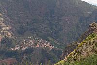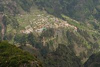Nakonec se mi naskytl pohled na městečko Curral das Freiras (= dvůr jeptišek) ležící v nadmořské výšce 640 m, ale vlastně na dně kotle tvořeného horami, které ho ze všech stran obklopují (obr. 195). Dostal jsem se na rozcestí, kde vedla cesta dál do Boca da Corrida, nebo odbočovala ke Curral das Freiras. Takže konečně v místech, kam jsme měli v plánu dojít. O pár desítek metrů vedle byla další odbočka vedoucí na vrchol hory Pico Grande. Byl jsem ve výšce zhruba kolem třinácti set metrů nad mořem, takže na vrchol bych se ještě řádně nastoupal. Ale jednak jsem počítal, že nemohu stihnout čas, kdy nás měl řidič čekat v Curral das Freiras, také jsem netušil, jak velký náskok mám před naší pětičlennou skupinkou, a na vrcholu hory stejně seděl mrak, takže bych z toho, že jsem se tam vydrápal, nic neměl.