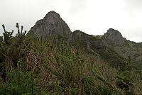Aspoň tady to ovšem řidič znal. Cestička totiž neústila přímo do Curral das Freiras, ale do sousední vesnice Faja dos Cardos, kde hned na nároží proti místní hospůdce stál náš mikrobus. Nad vesnicí ční 1497 metrů vysoká hora, jejíž název se mi nepovedlo zjistit (obr. 200). Byl jsem tak vyřízený, že jsem si dal kafe (tento rok už druhé, a to vlastně během jediného týdne – abych to nepřehnal!) a kus místního koláče. Pak dorazil Martin. Zbytek zřejmě čekal, až začne pršet. Nemuseli čekat dlouho. Když už nás tam bylo pět, dali jsme si také pivo, a sláva!, dorazil i Ilja. Vypadal naprosto zničeně.